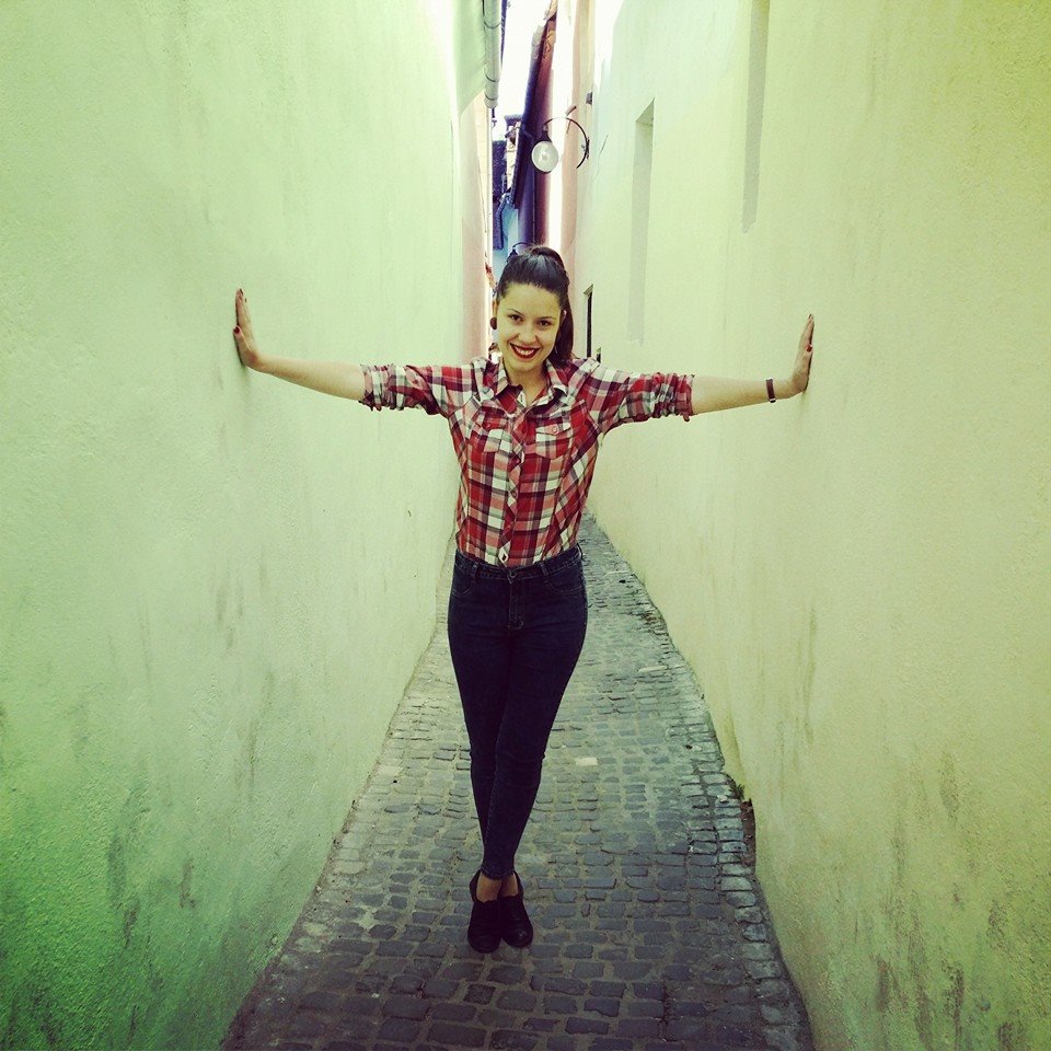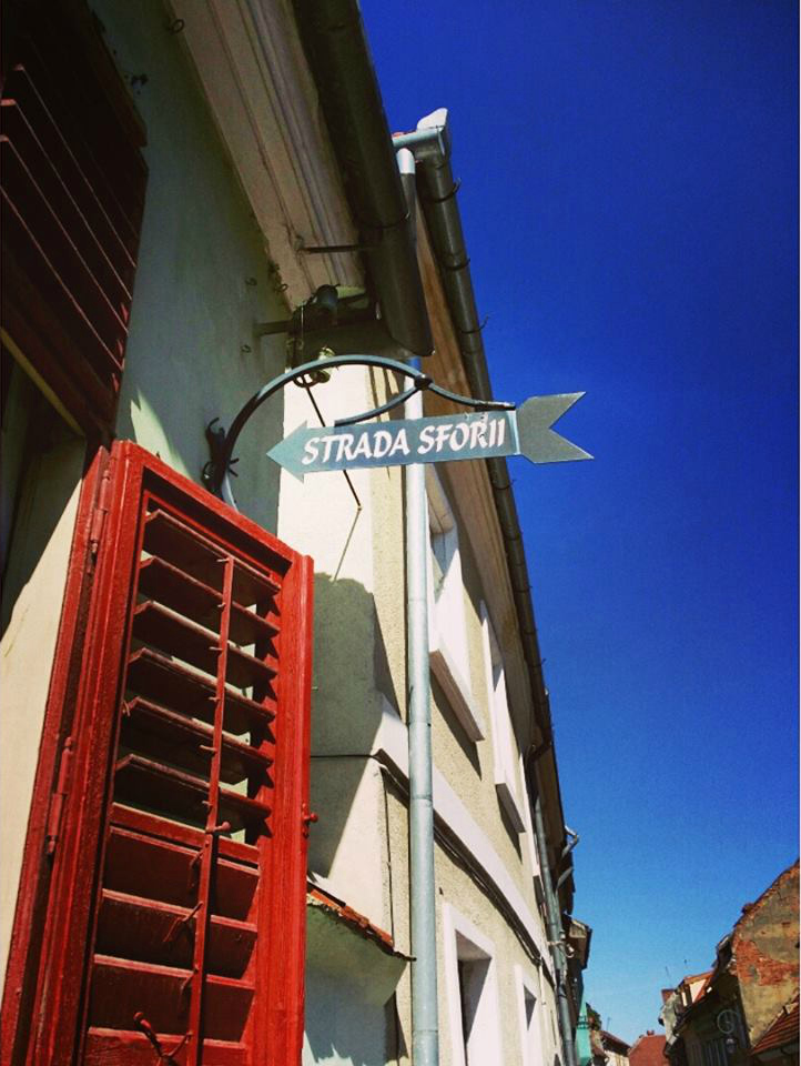 Nu am putut rata nici Strada Sforii, care m-a dus cu gandul la minusculele alei ale Amsterdamului. A fost chiar amuzanta incercarea mea de ma prinde in poza, cumva, suspendata intre ziduri. M-am multumit, insa, cu o pozitie clasica.