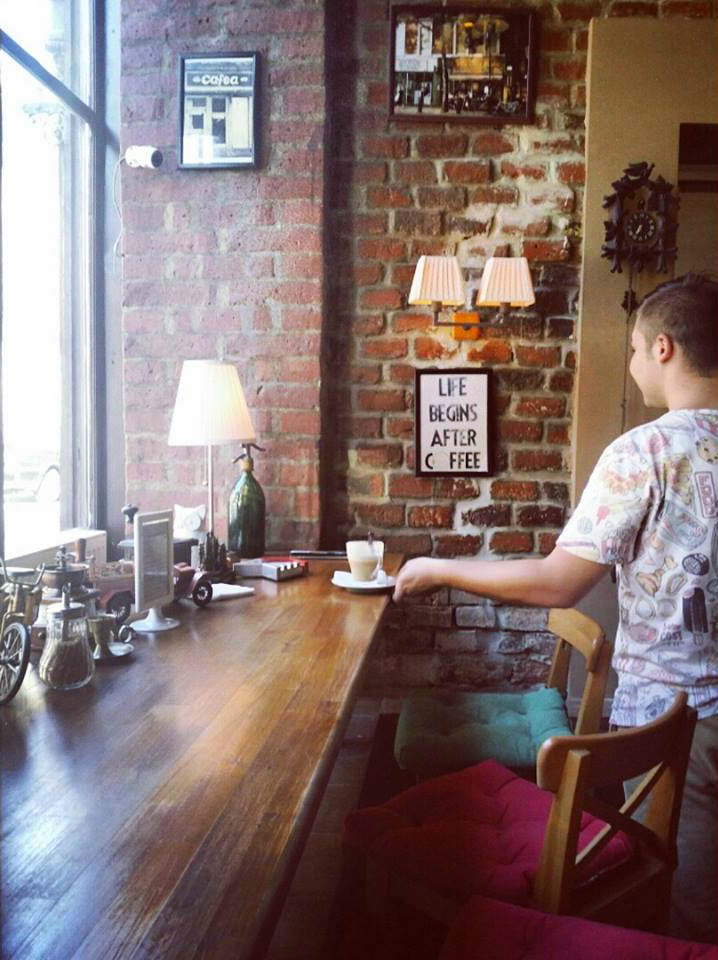 Cum Cristi e cu ochii dupa cafenele iesite din comun ( fapt ce completeaza excursiile pe care le facem impreuna ), am ajuns sa bem un Irish Coffee la Kafe Pub, un local excentric prin decor, dar si prin muzica. Am ascultat un jazz al anilor ’40, care a completata perfect atmosfera barului.