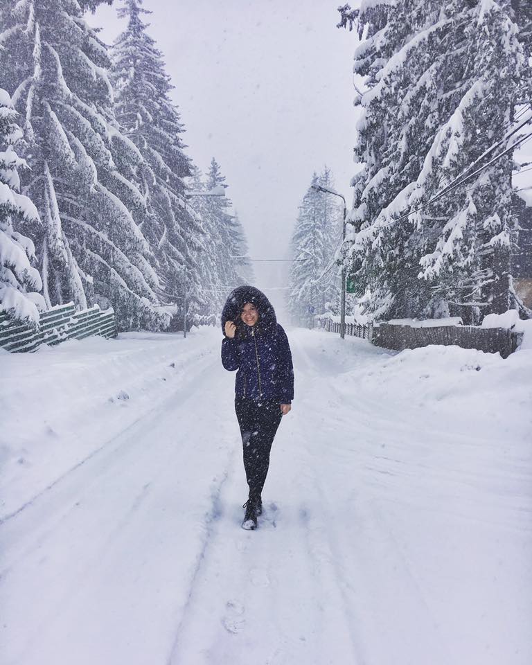 Am avut o ieșire spontană la Predeal, alături de niște prieteni dragi. Se întâmpla în aprilie și a nins mai mult decât în iarnă. Ne-am baridicat într-o vilă, sus de tot, cu mulți litri de vin, și am stat la povești, cu muzică bună și privind pe geam, spre munți, cum ningea des și cu fulgi mari. E un moment pe care mi-l voi aminti mereu.